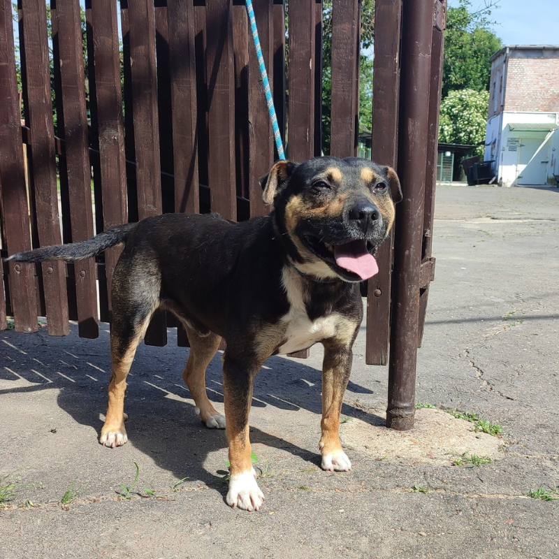 Előéletéről nem tudunk semmit, de vélhetően nem volt egyszerű. Talán a legjobb történés az volt az életében, hogy bekerült a telepre. Kezdeti bizalmatlansága már a múlté, kibontakozott kedves, barátságos énje. A bezártságot nehezen bírja, megviseli a kennelrabság. Egyedüli öröme ha a két hetente egyszer megtartott nyílt napokon foglalkoznak vele. Olyankor nagyon jól viselkedik, rendkívül kedves, figyelmes, jól tanítható kutyus.